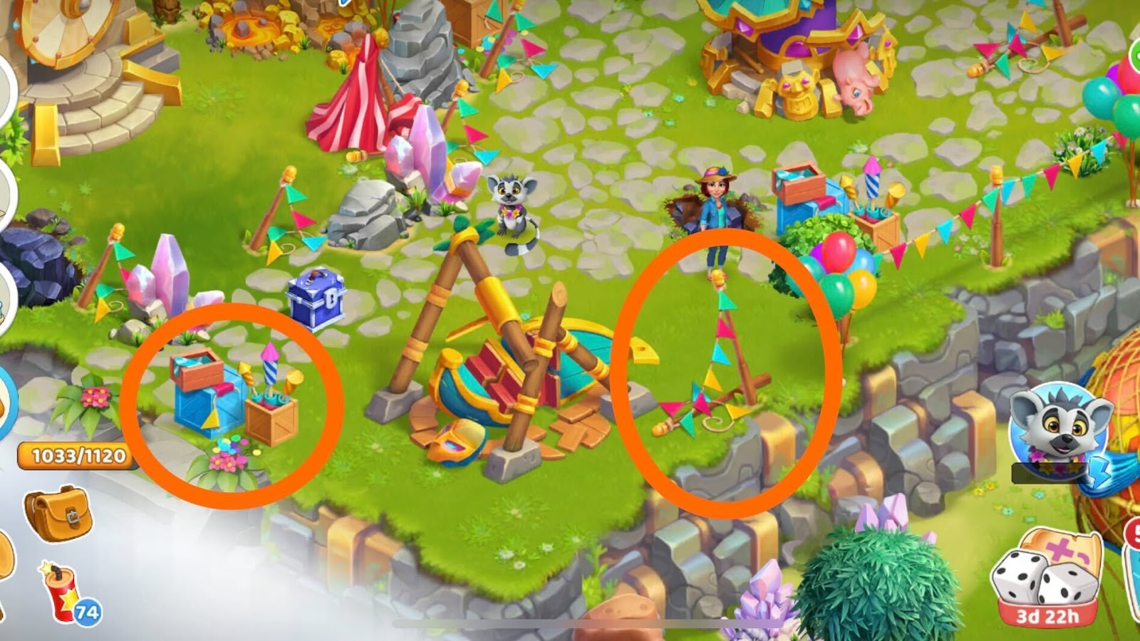 Im gleichen Teil der Insel musst du kaputte Pfosten, Müll und Kisten mit Feuerwerkskörpern einsammeln. All diese Gegenstände bringen dir Ressourcen ein.