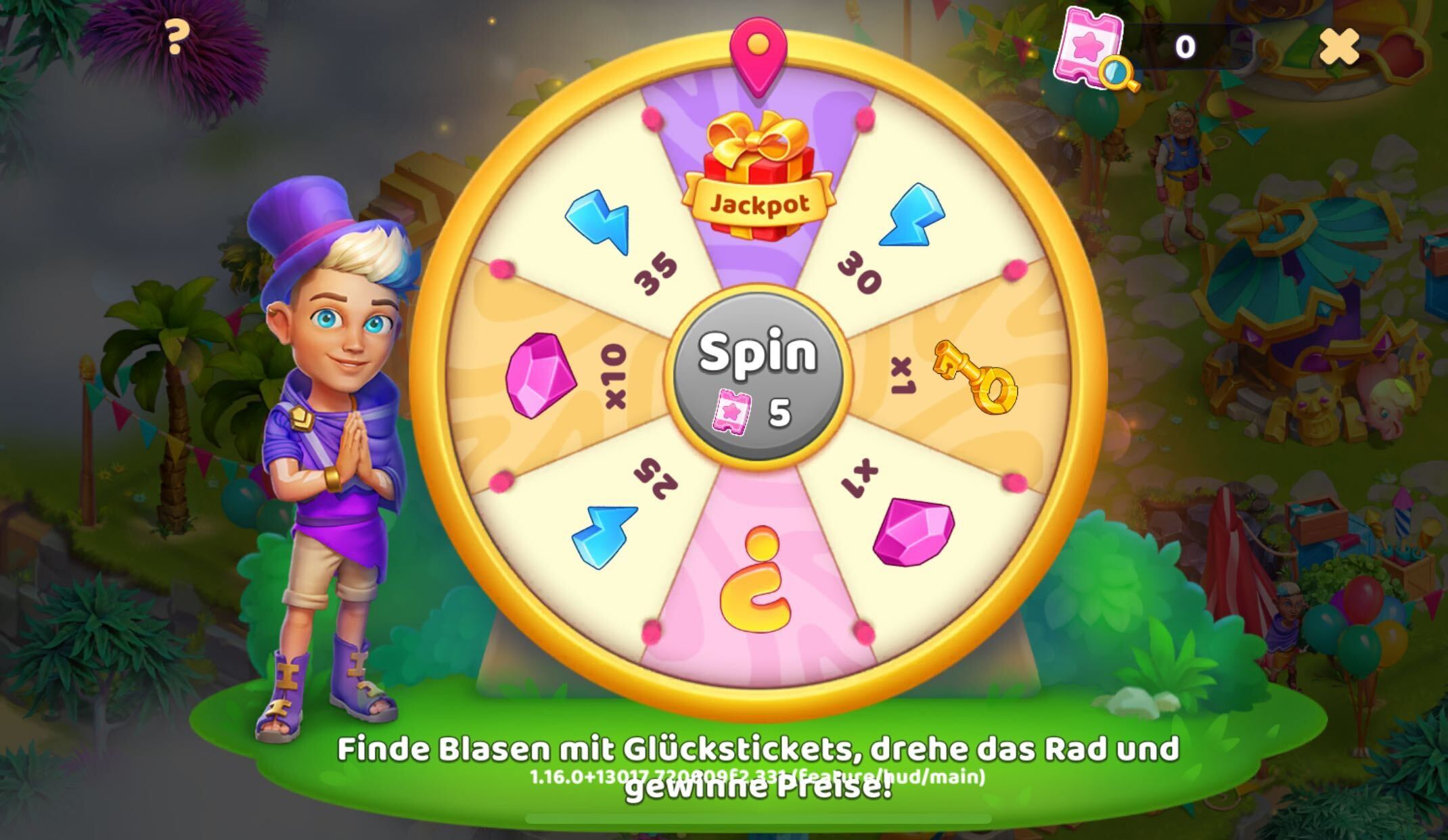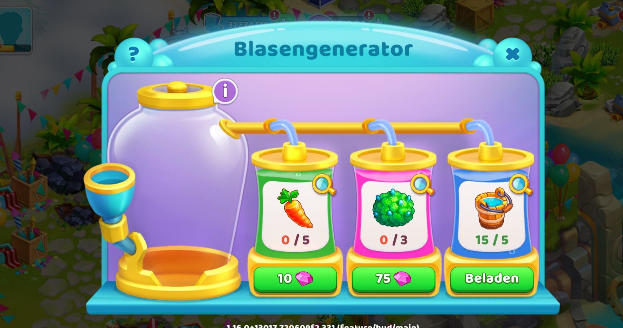 Im oberen Teil der Insel hast du die Möglichkeit, mit dem Blasengenerator und dem Glücksrad zu interagieren, die dir beide Boni bescheren können.
