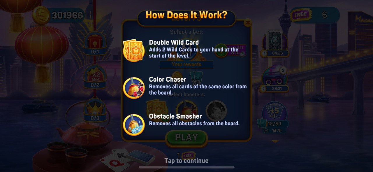 Double Wild Card — adds two Wild Cards to your hand at the start of a level.