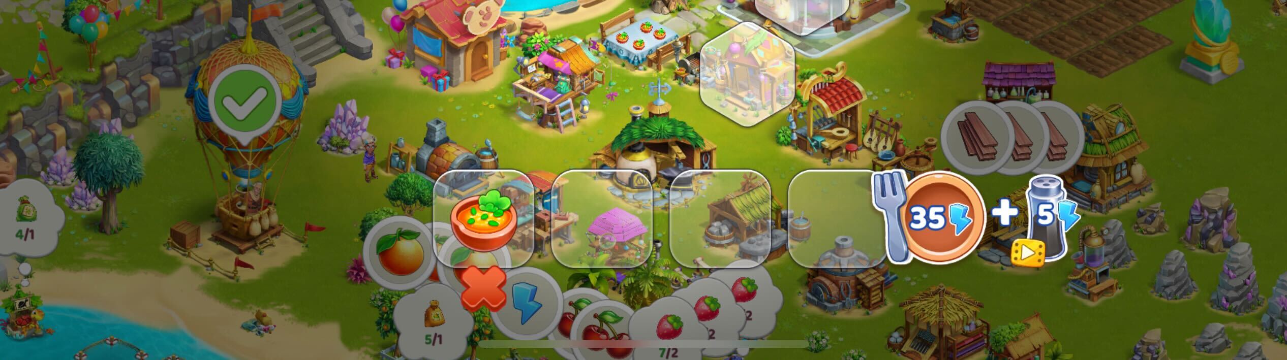 Puoi preparare il cibo per i personaggi del gioco e ottenere cariche di energia quando lo mangiano. Per farlo, seleziona un piatto (raccogli tutti gli ingredienti necessari per cucinarlo) sulla Griglia e trascinalo su una casella vuota nella parte inferiore dello schermo.