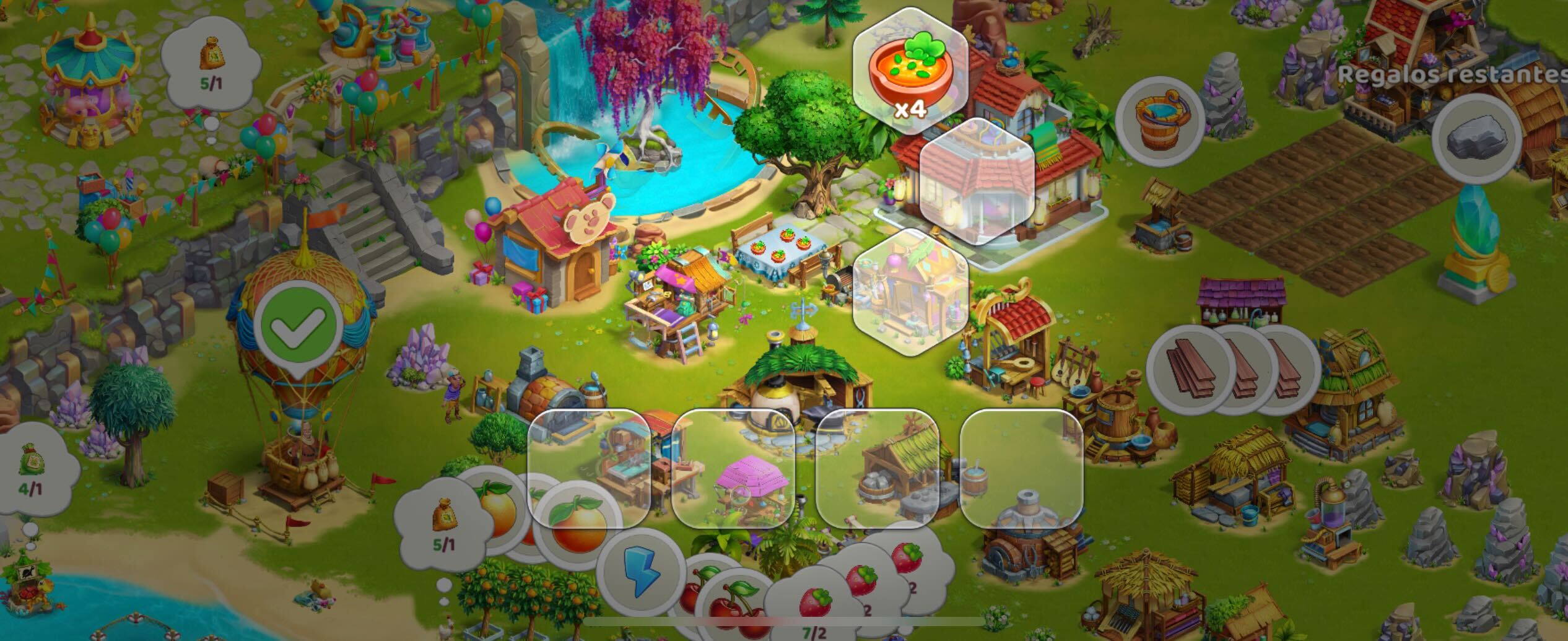Una volta che saranno cresciute, potrai raccogliere le colture. Tocca il raccolto, quindi tocca e tieni premuta la falce e trascinala sulle colture per raccoglierle. L'intero raccolto finirà nel tuo deposito. Se non hai spazio sufficiente nel deposito, le risorse si accumulano in mucchi sul terreno vicino al luogo in cui le hai raccolte.