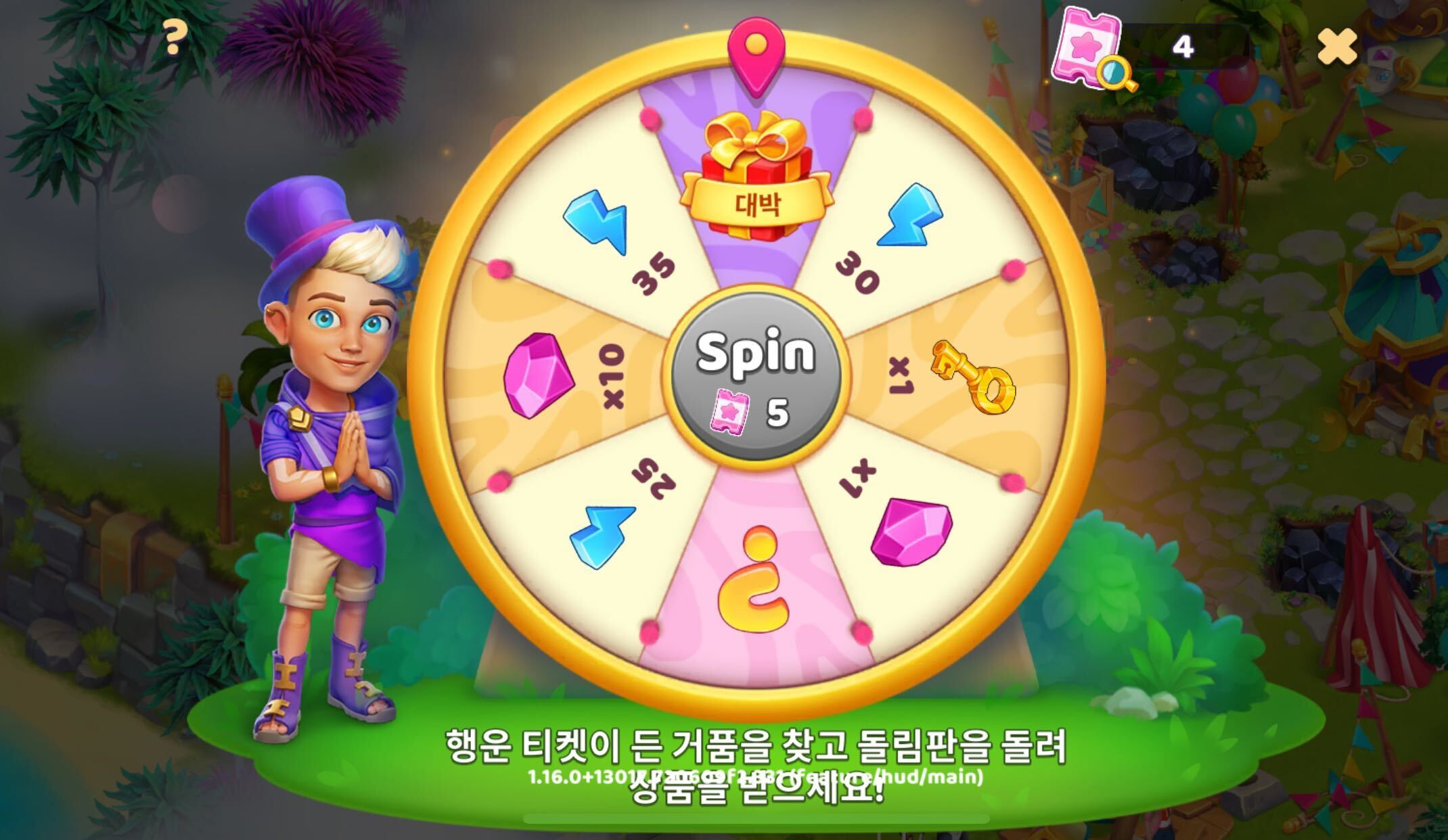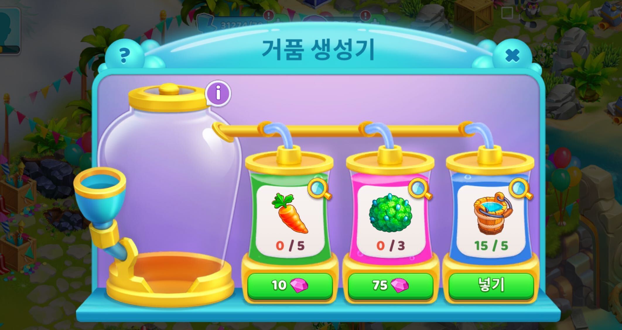 섬 위쪽에서는 거품 생성기, 행운의 돌림판과 상호 작용해 보너스를 받을 수 있습니다.