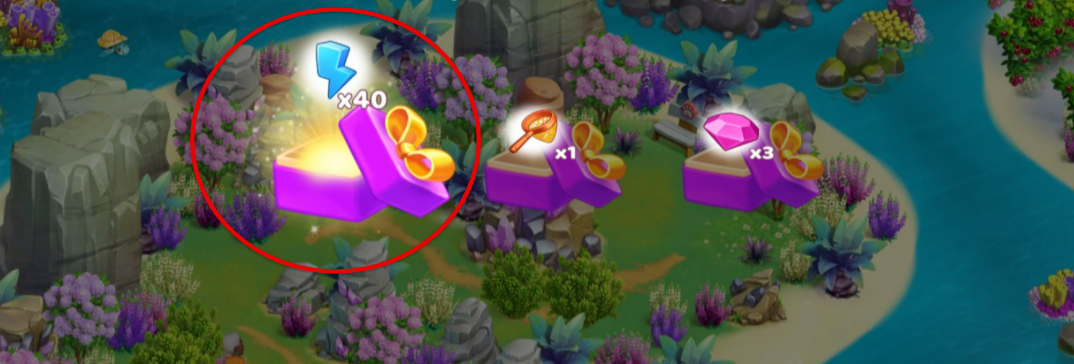 Ao remover formigueiros, caranguejos, lixo, arbustos espinhosos e baús na ilha, você também receberá uma carga de energia.