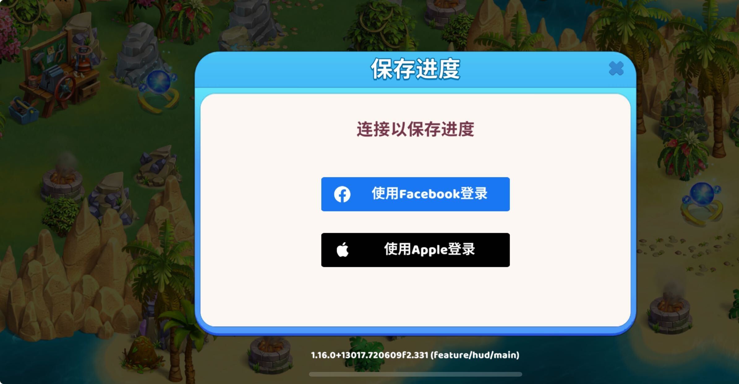 有几种方法可以保存你的游戏进度,使用Facebook/Google Play/Apple ID。你可以在游戏菜单中查看可用选项。轻触屏幕右上角的 按钮,然后按菜单中的“保存进度”按钮,随后会打开一个显示保存选项的窗口。