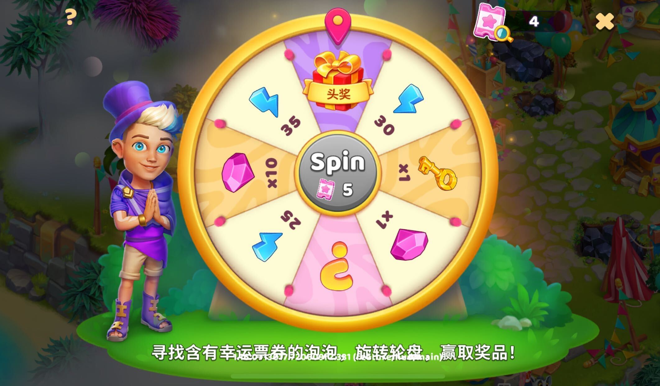 岛屿的上半部分为你提供了与泡泡生成器和命运之轮互动的机会,这两个互动游戏都会为你提供加成。