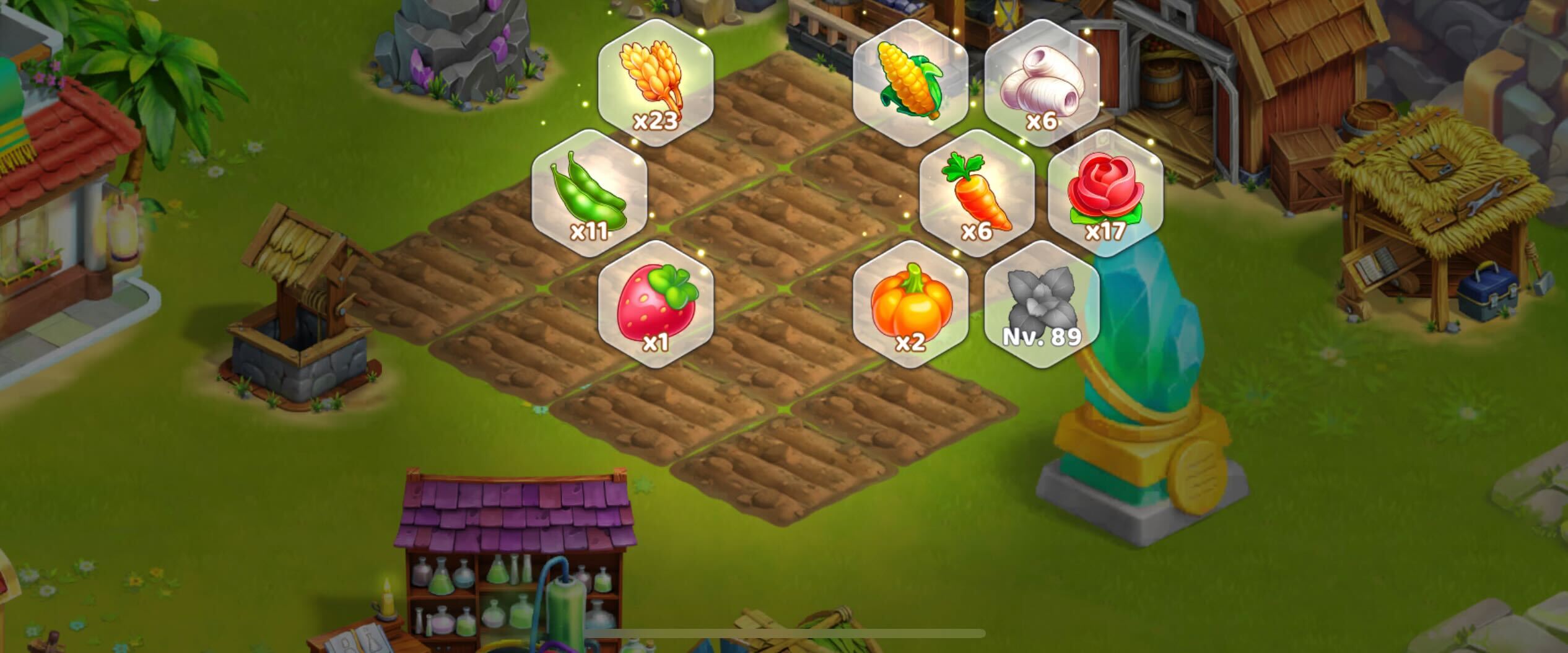 生长期结束后,你就可以收割了。轻触作物,然后轻触并长按镰刀,将其拖过作物即可收集。所有作物最终都会进入你的仓库。如果你的仓库空间不足,资源就会堆积在收割地旁边的地面上。